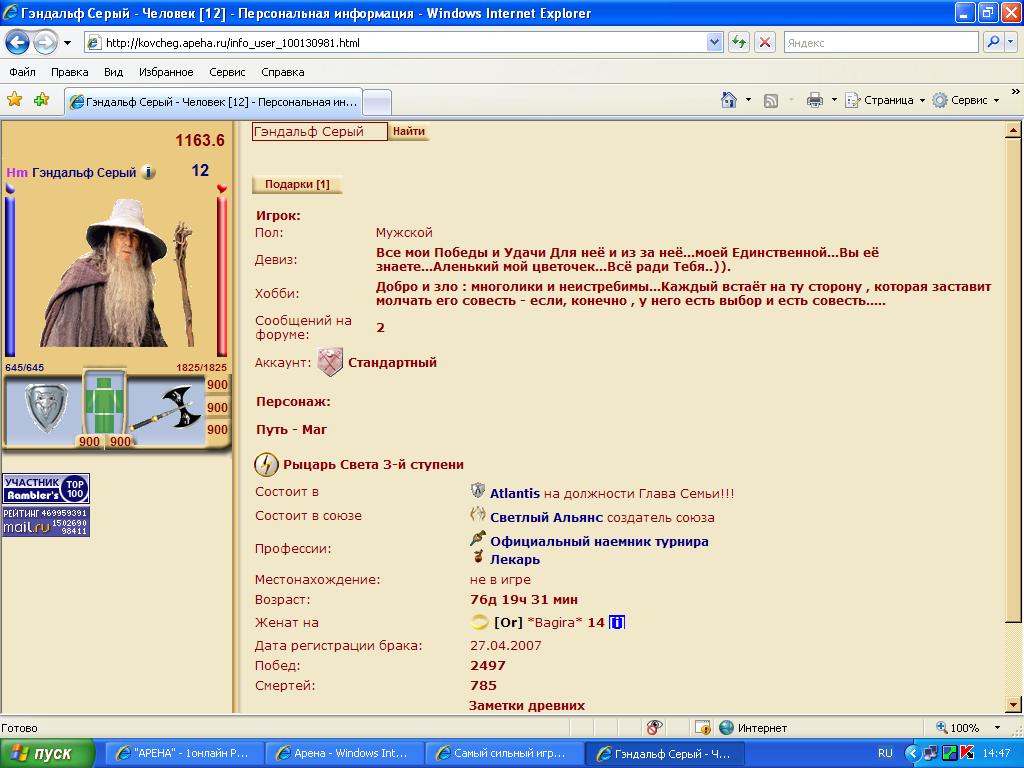 | Ладно, не хотел хвастаться, но самый сильный игрок в арене это Я )))) Просто спецом рейт занизил, что б не выпендриваться)))) Так что на колени перед папкой